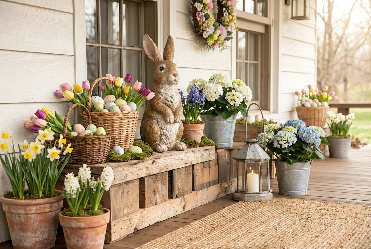 Easter Porch Decorations for a Vibrant Spring Front Porch Welcome